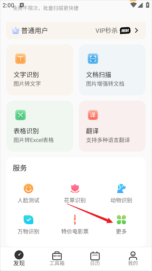 1、打开洋果扫描王,在首页界面点击“更多”功能选项。
