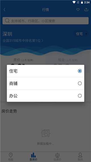 房价行情:搜索全国任意城市、区县、物业小区,查看房价租金行情及走势。
