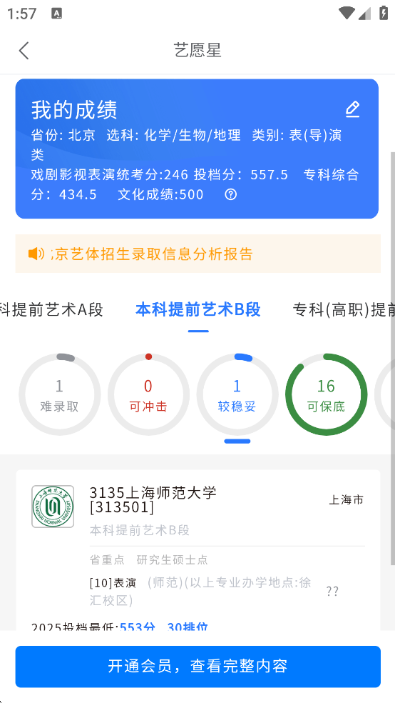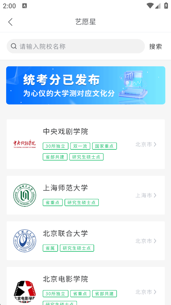 在现实生活当中,相信很多人对于志愿的填报都有一定的疑惑,志愿填报对于高考后的学生来说同等的重要,也是一个比较重大的节点选择,今天就给大家分享一款关于艺术生填报志愿指导的软件,艺愿星,用户在使用软件填完信息之后,系统根据填写的个人信息推荐上千所统考院校,通过科学算法为考生提供志愿填报指导。有需要的朋友可以下载艺愿星体验一下。
