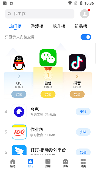 2、人气排行:根据下载排行推荐给你最热门最新鲜的应用和游戏。